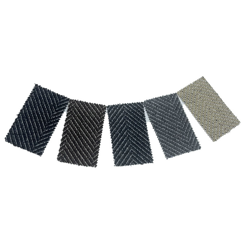 Dette stoffet, betegnet som artikkel 4134, er et jacquardvevet tweedtekstil som består av 30 % ull og 70 % andre fibre. Med en masse per arealenhet på 530 g/m presenterer den en middels til tung konstruksjon. Stoffet har et fiskebeinsmønster skapt gjennom jacquard-veveprosessen, som danner presise V-formede motiver over tekstiloverflaten. Denne produksjonsteknikken kombinerer den visuelle definisjonen av jacquard med den strukturelle holdbarheten til fiskebeinsveven. Ullblandingssammensetningen bidrar til stoffets spenst og slitestyrke. Disse tekniske egenskapene resulterer i et materiale med geometrisk mønsterklarhet og strukturell integritet, noe som gjør det egnet for bilseteproduksjon der både estetisk artikulasjon og langsiktig ytelse er nødvendig.