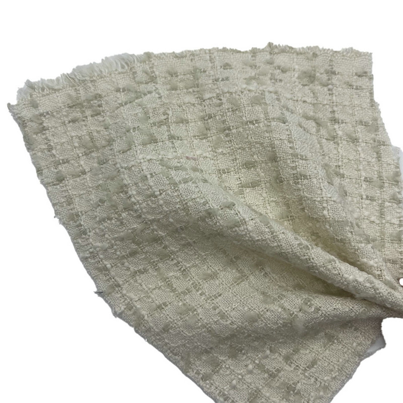 Dette stoffet, betegnet som artikkel 23017, er et jacquardvevd tweed-tekstil sammensatt av 100 % polyester. Med en masse per arealenhet på 265 gsm presenterer den en lett konstruksjon som passer for dameklær. Den rosa basen har et sommerfuglmønster integrert direkte i stoffet gjennom jacquardveveprosessen. Denne teknikken skaper presis motivdefinisjon i den vevde strukturen. Hele polyestersammensetningen sikrer dimensjonsstabilitet og jevn ytelse under plaggproduksjon. Disse tekniske egenskapene resulterer i et stoff med tydelig mønsterartikulasjon og strukturell integritet, noe som gjør det egnet for klesplagg der detaljerte designelementer og materialpålitelighet kreves.